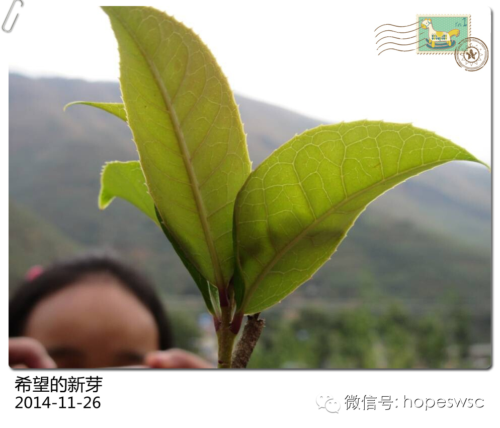 还有这一株嫩嫩的新芽,小小的双手托举着它。小芸说新芽代表了新的希望,虽然地震毁了她的家,她的亲朋里也有人因此而离开,但她并不绝望,因为生活处处充满着希望。